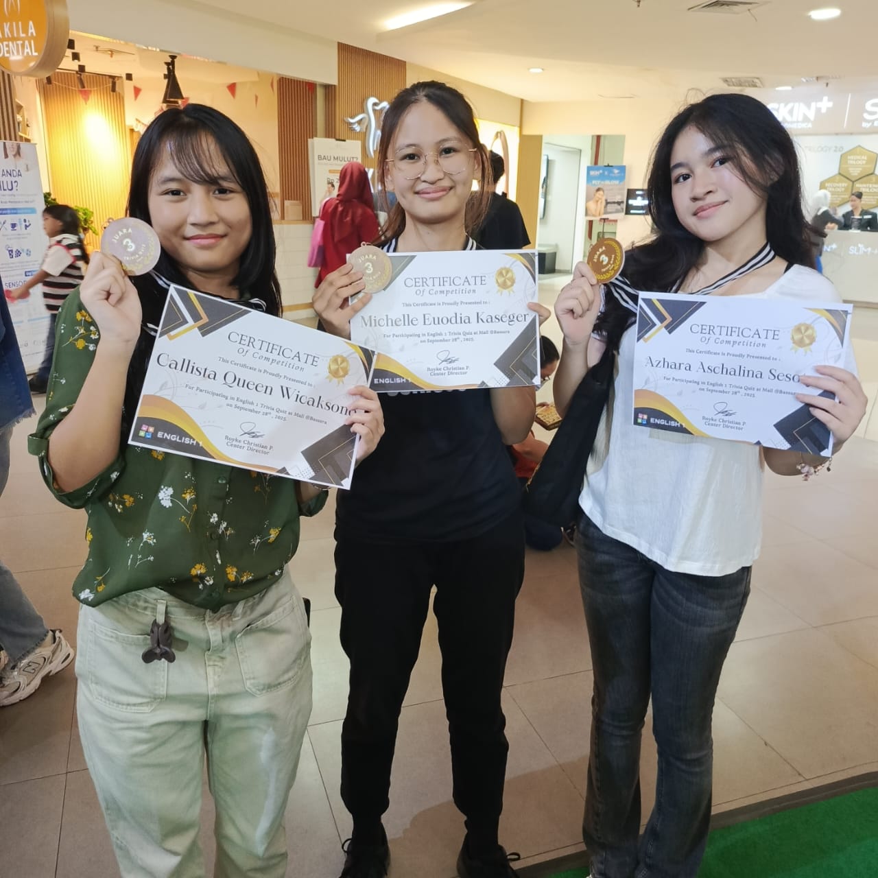 Siswa SMA Santo Antonius kembali mencetak prestasi membanggakan dalam ajang English Trivia Quiz Competition. Tiga siswi, yakni Callista Queen Wicaksono, Michelle Euodia Kaseger, dan Azhara Aschalina S, berhasil meraih penghargaan dengan membawa pulang sertifikat dan medali. Keberhasilan ini menjadi bukti nyata semangat belajar dan kemampuan mereka dalam menguasai bahasa Inggris di tingkat kompetisi.