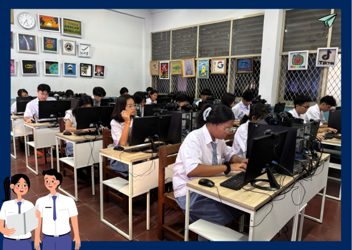 Laboratorium Komputer merupakan tempat untuk penggunaan perangkat audio-visual, seperti headphone, mikrofon, dan komputer yang terhubung dengan perangkat lunak interaktif, yang memungkinkan siswa berlatih keterampilan bahasa secara mandiri