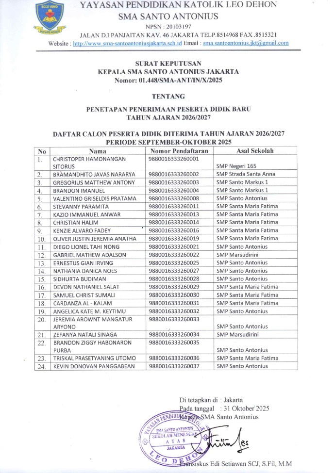 Berikut adalah penetapan penerimaan peserta didik baru tahun ajaran 2026/2027